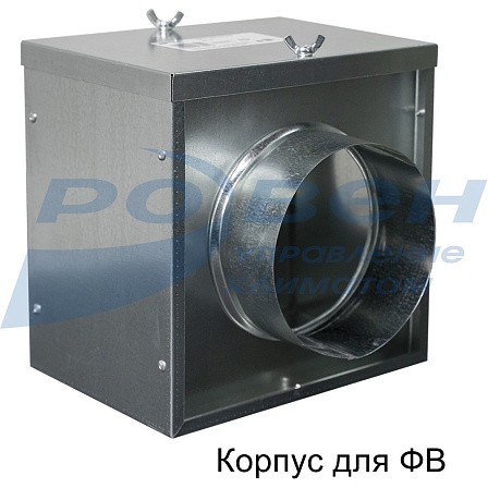 Корпус фильтра снабжен круглыми патрубками для подсоединения воздуховодов или компонентов вентиляционной системы.