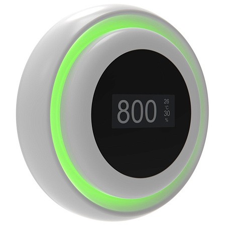 На корпусе прибора отображается индикация качества воздуха по уровню концентрации углекислого газа (световое кольцо вокруг дисплея):