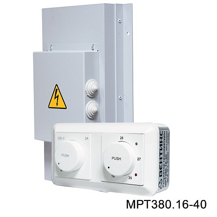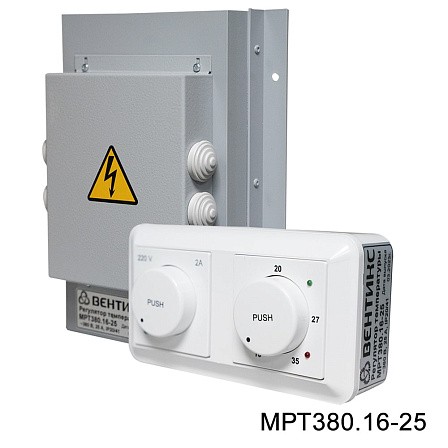 Симисторные регуляторы МРТ380.16-25 (МРТ380.16-40) предназначены для поддержания температуры воздуха и регулировки скорости вентилятора на 220В в системах вентиляции с электрическим калорифером. Поддержание температуры происходит за счет периодического включения/выключения ТЭНов нагревателя. Максимальный ток вентилятора на 220В: 2А.