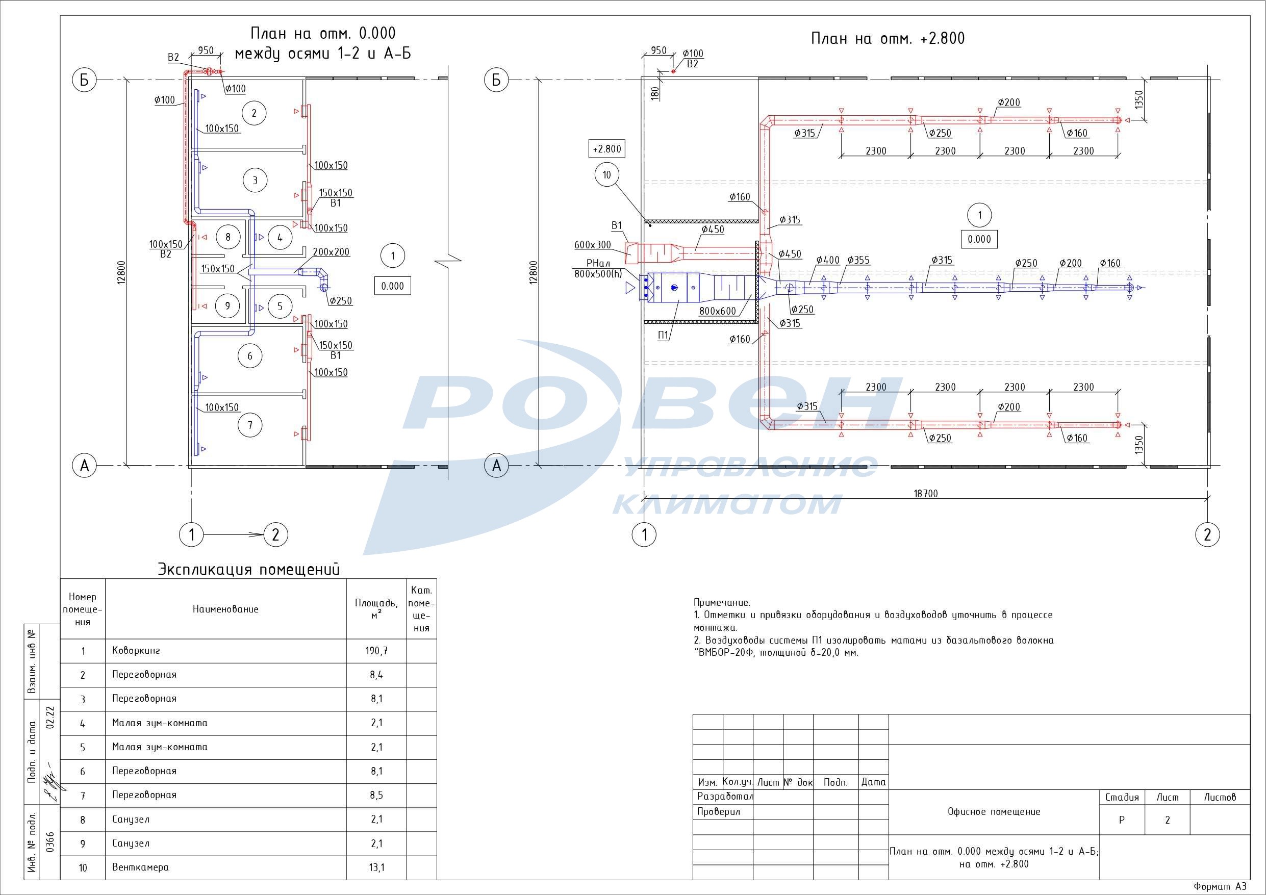 - коворкинг, зум-комнаты -  приточная система - П1, вытяжная система В1.