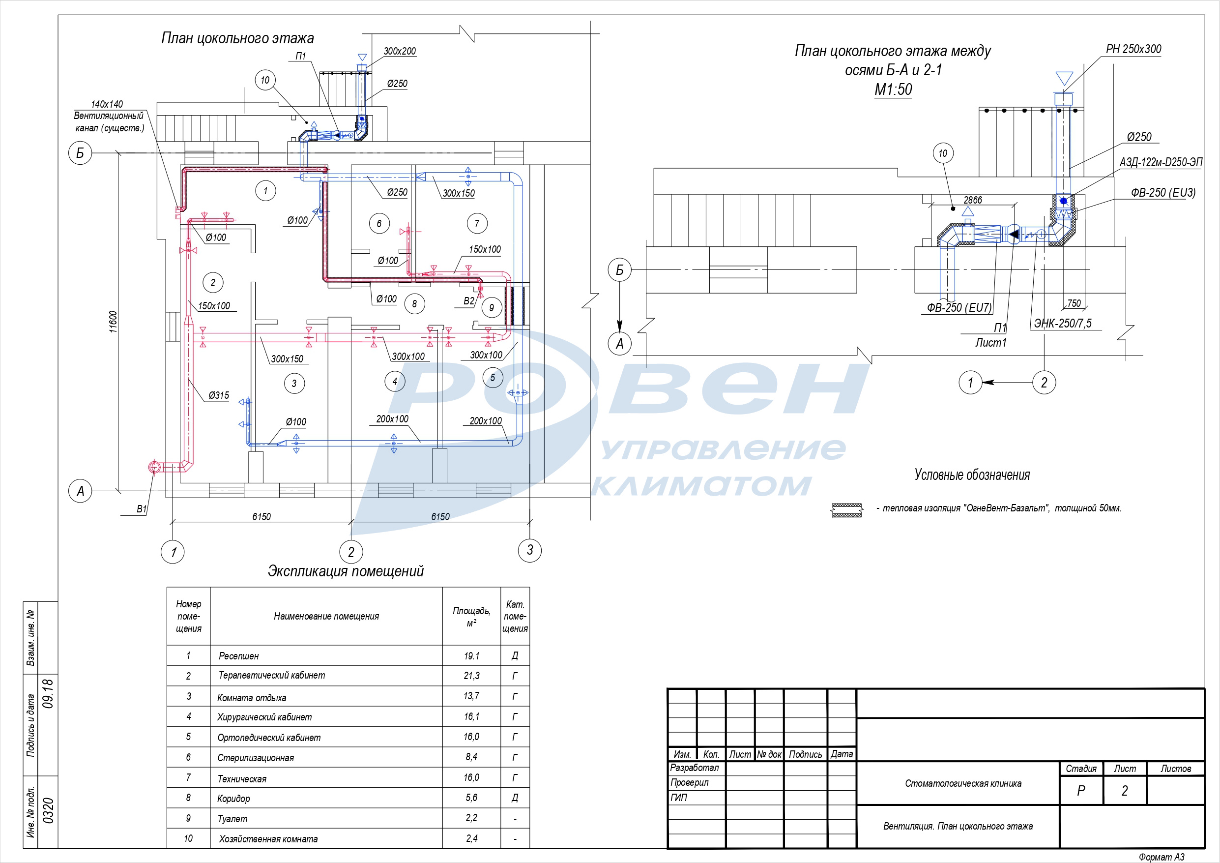 В помещениях стоматологической клиники предусматривается устройство систем приточно-вытяжной вентиляции с механическим побуждением.